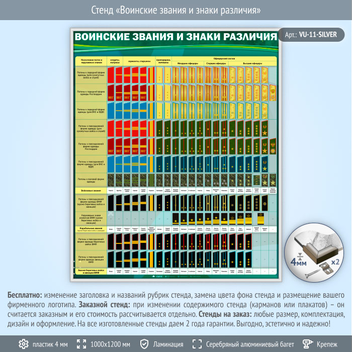 Стенд «Воинские звания и знаки различия» (VU-11-SILVER) в Омске купить