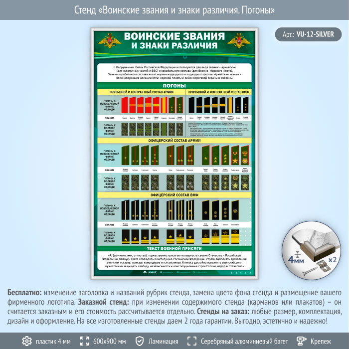 Стенд «Воинские звания и знаки различия. Погоны» (VU-12-SILVER) в Омске купить