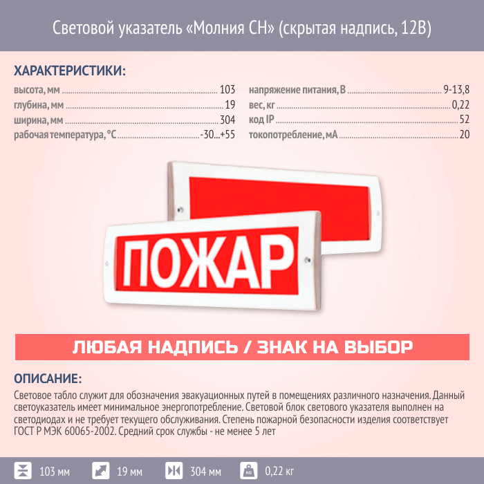 Световой указатель Молния СН (скрытая надпись, 12В) в Омске купить