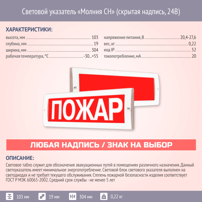 Световой указатель Молния СН (скрытая надпись, 24В) в Омске купить