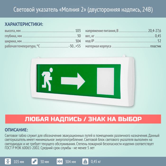 Световой указатель Молния 2 (двусторонняя надпись, 12В) в Омске купить