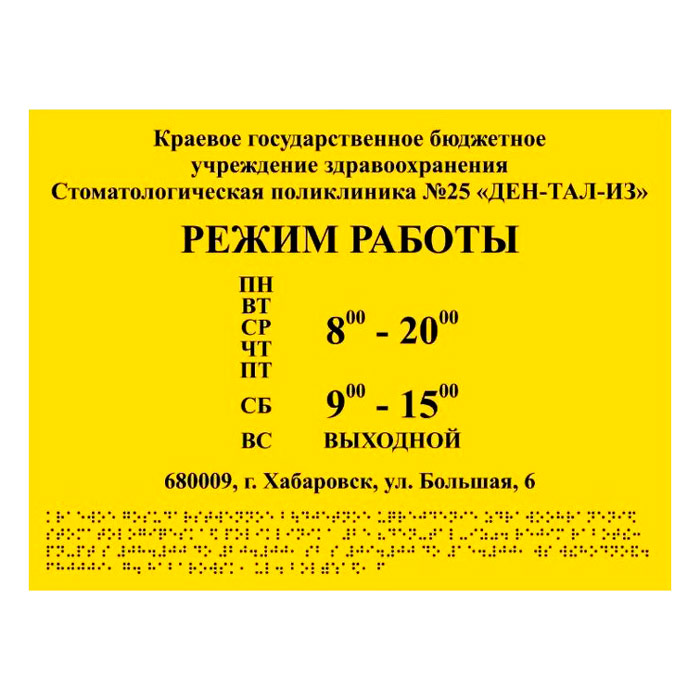Тактильная вывеска с дублированием азбукой Брайля, ДС12 (полистирол 3 мм, 400х300 мм) в Омске купить