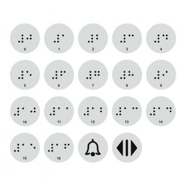 Тактильные наклейки для кнопок лифта с 0 по 16 этаж (набор) , ДС96 (пленка, 20х20 мм, серебристый) в Омске купить