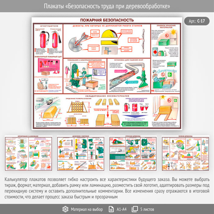 Плакаты «Безопасность труда при деревообработке» (С-17, 5 листов) в Омске купить