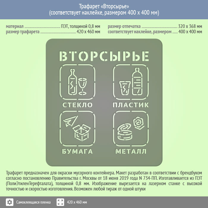 Трафарет «Вторсырье» (соответствует наклейке, размером 400х400 мм) в Омске купить