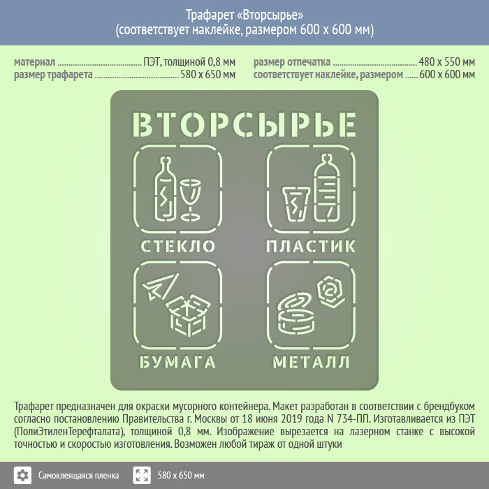 Трафарет «Вторсырье» (соответствует наклейке, размером 600х600 мм) в Омске купить