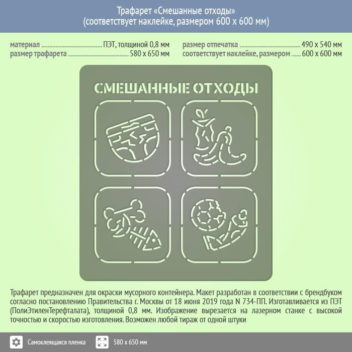 Трафарет «Смешанные отходы» (соответствует наклейке, размером 600х600 мм) в Омске купить