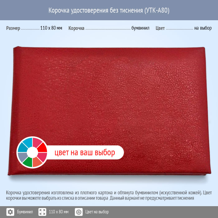 Бланк удостоверения без тиснения, цвет на выбор, 110 x 80 мм (УТК-А80) | Бланк удостоверения без тиснения, цвет на выбор, 110 x 80 мм (УТК-А80) |