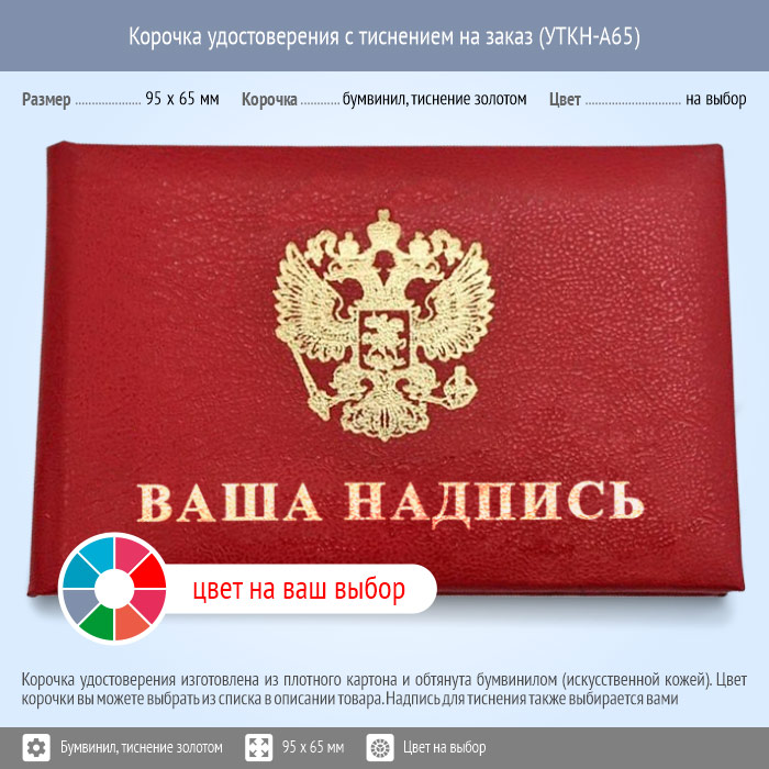 Бланк удостоверения с тиснением на заказ, цвет на выбор, 95 x 65 мм (УТКН-А65) | Бланк удостоверения с тиснением на заказ, цвет на выбор, 95 x 65 мм (УТКН-А65) |