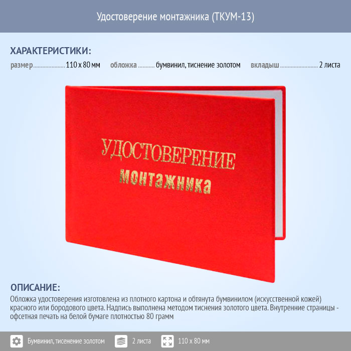 Бланк удостоверения монтажника (ТКУМ-13) в Омске купить