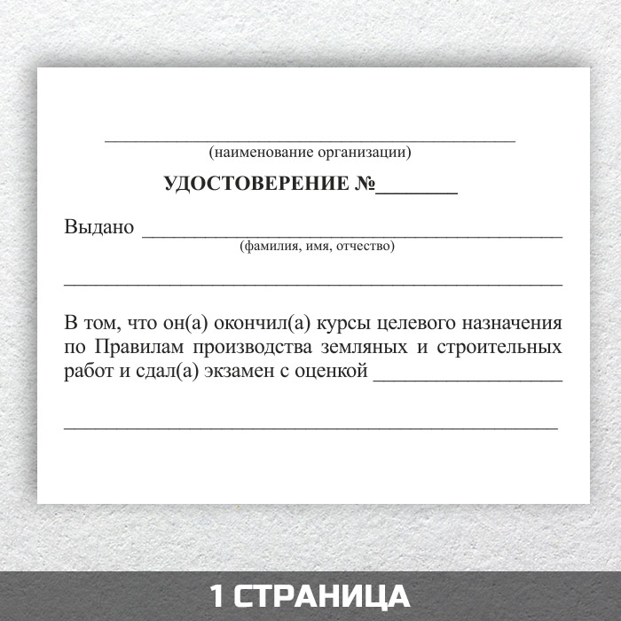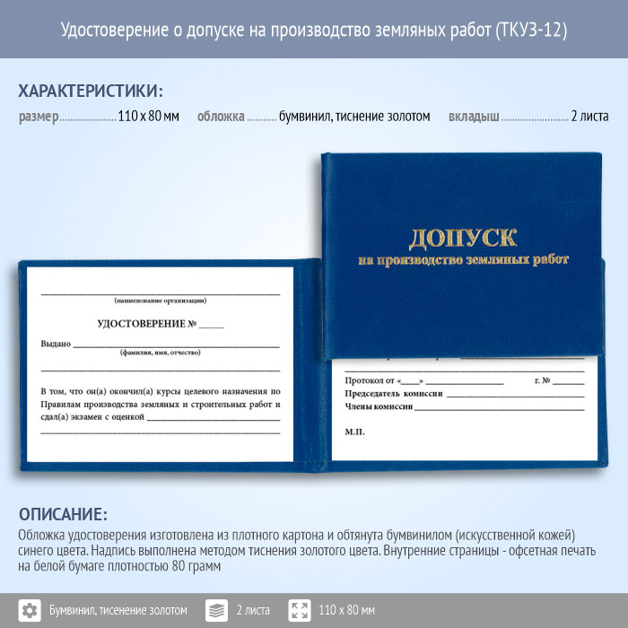 Бланк удостоверения о допуске на производство земляных работ (ТКУЗ-12) в Омске купить