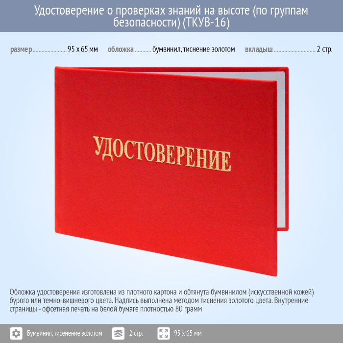 Бланк удостоверения о проверках знаний на высоте (по группам безопасности) (ТКУВ-16) в Омске купить