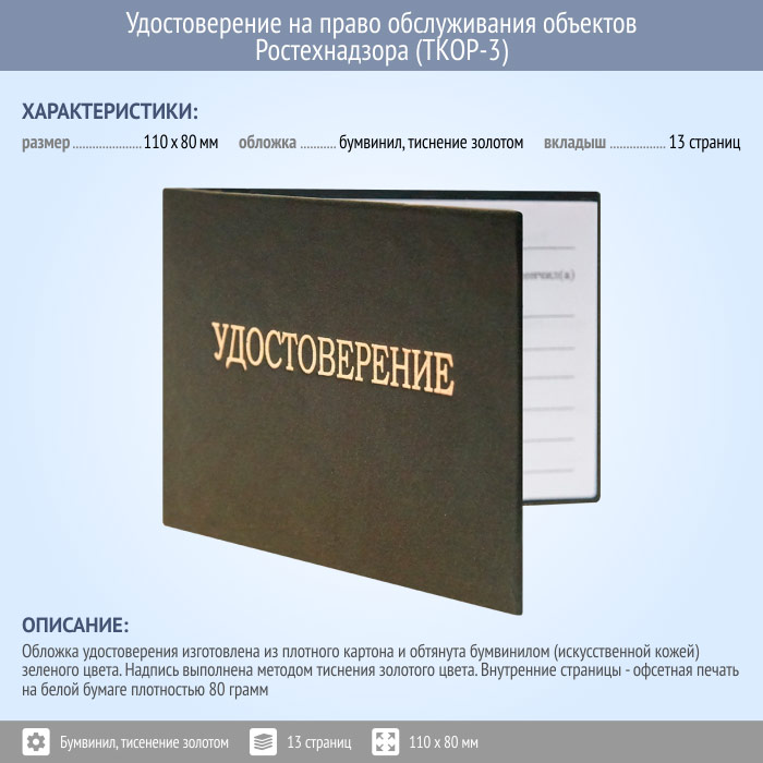 Бланк удостоверения на право обслуживания объектов Ростехнадзора (ТКОР-3) в Омске купить