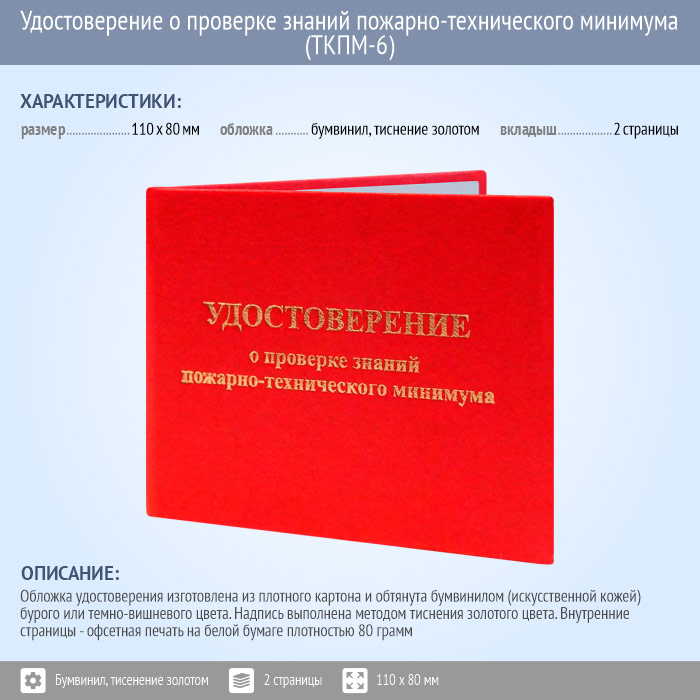 Бланк удостоверения о проверке знаний пожарно-технического минимума (ТКПМ-6) в Омске купить