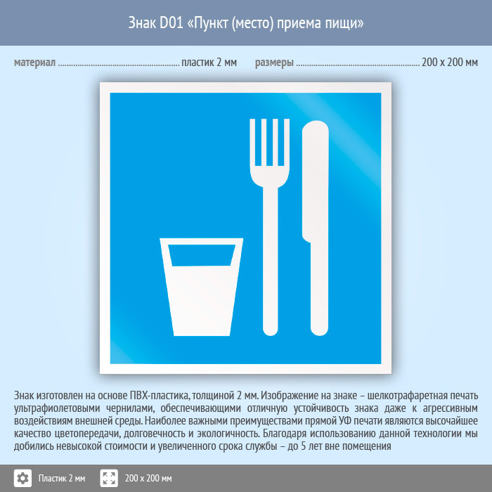 Знак D01 «Пункт (место) приема пищи» (пластик, 200х200 мм) в Омске купить