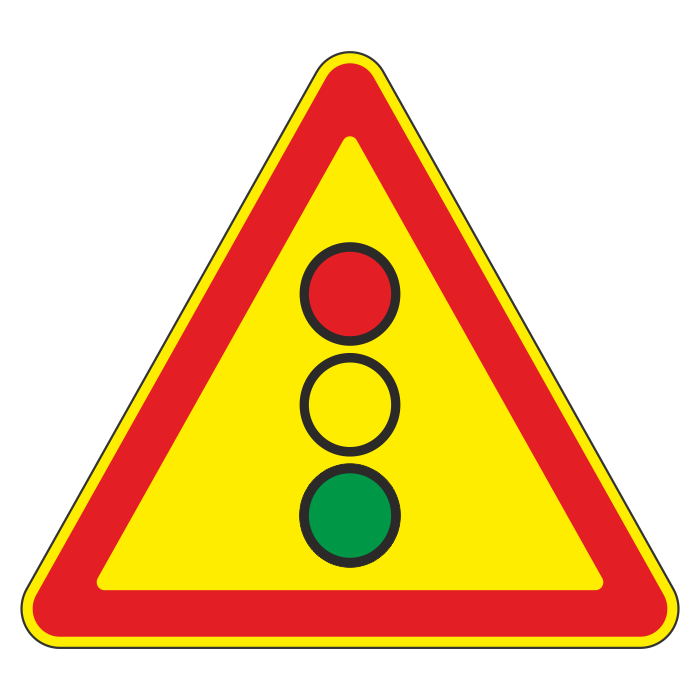 Дорожный знак 1.8 «Светофорное регулирование» (временный) (металл 0,8 мм, II типоразмер: сторона 900 мм, С/О пленка: тип Б высокоинтенсивная) в Омске купить