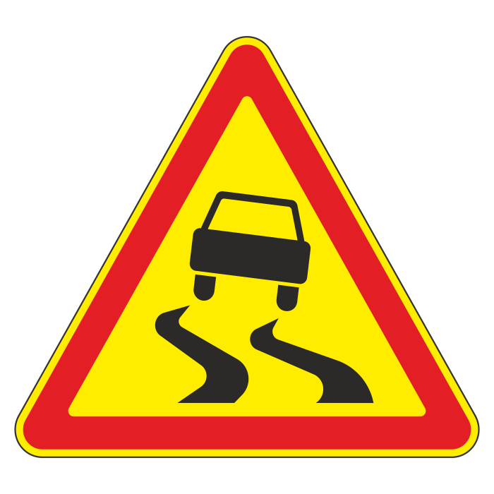 Дорожный знак 1.15 «Скользкая дорога» (временный) (металл 0,8 мм, IV типоразмер: сторона 1500 мм, С/О пленка: тип А инженерная) в Омске купить