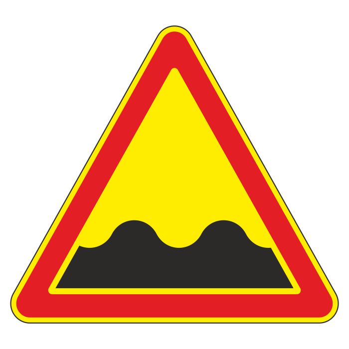 Дорожный знак 1.16 «Неровная дорога» (временный) (металл 0,8 мм, I типоразмер: сторона 700 мм, С/О пленка: тип В алмазная) в Омске купить