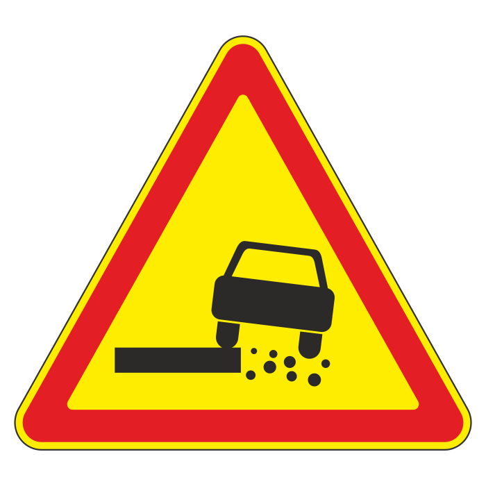 Дорожный знак 1.19 «Опасная обочина» (временный) (металл 0,8 мм, IV типоразмер: сторона 1500 мм, С/О пленка: тип Б высокоинтенсивная) в Омске купить