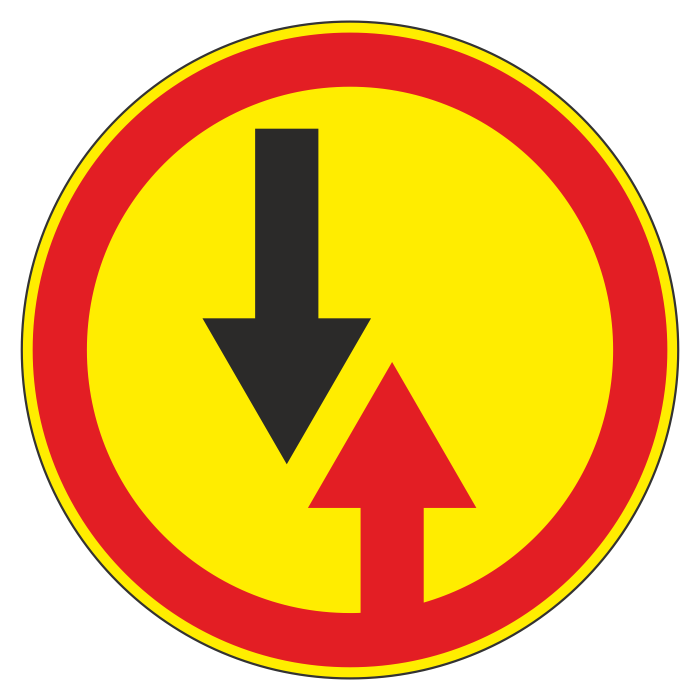 Дорожный знак 2.6 «Преимущество встречного движения» (временный) (металл 0,8 мм, I типоразмер: диаметр 600 мм, С/О пленка: тип В алмазная) в Омске купить