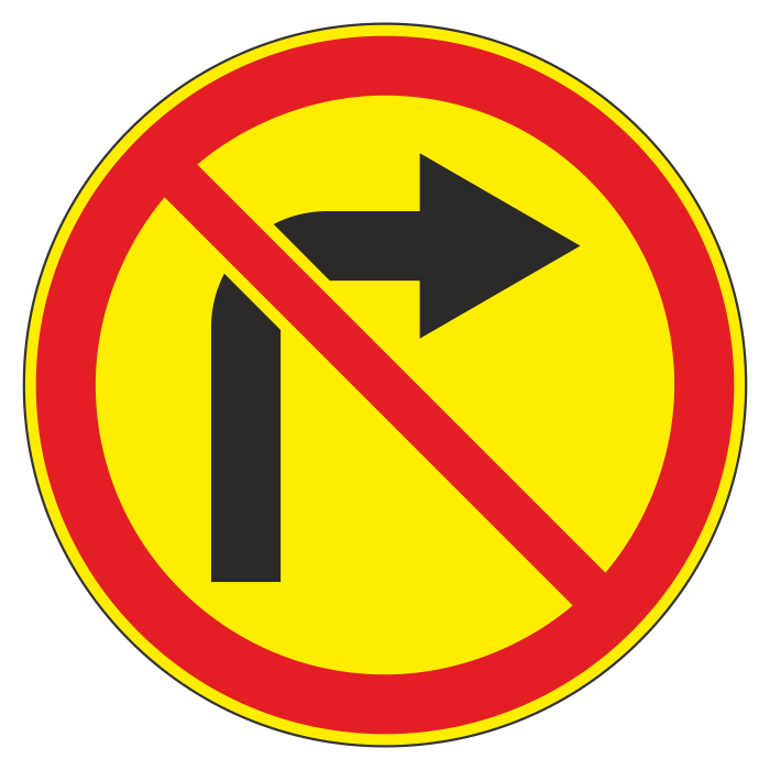 Дорожный знак 3.18.1 «Поворот направо запрещен» (временный) (металл 0,8 мм, III типоразмер: диаметр 900 мм, С/О пленка: тип А коммерческая) в Омске купить