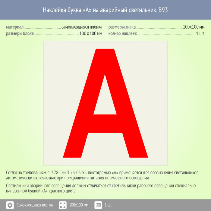 Наклейка буква «А» на аварийный светильник, B93 (пленка, 100х100 мм) в Омске купить