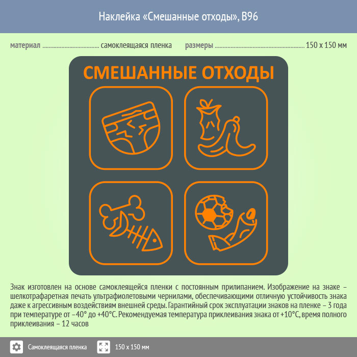 Наклейка на бак «Смешанные отходы», B96 (пленка, 150х150 мм) в Омске купить