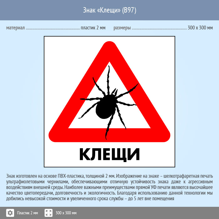 Знак «Клещи», B97 (пластик, 200х200 мм) в Омске купить