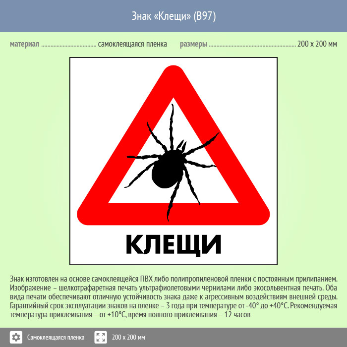 Знак «Клещи», B97 (пленка, 300х300 мм) в Омске купить