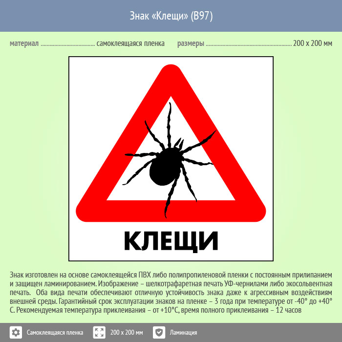 Знак «Клещи», B97 (пленка c ламинированием, 300х300 мм) в Омске купить
