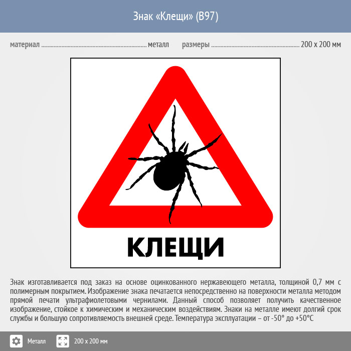 Знак «Клещи», B97 (металл, 300х300 мм) в Омске купить