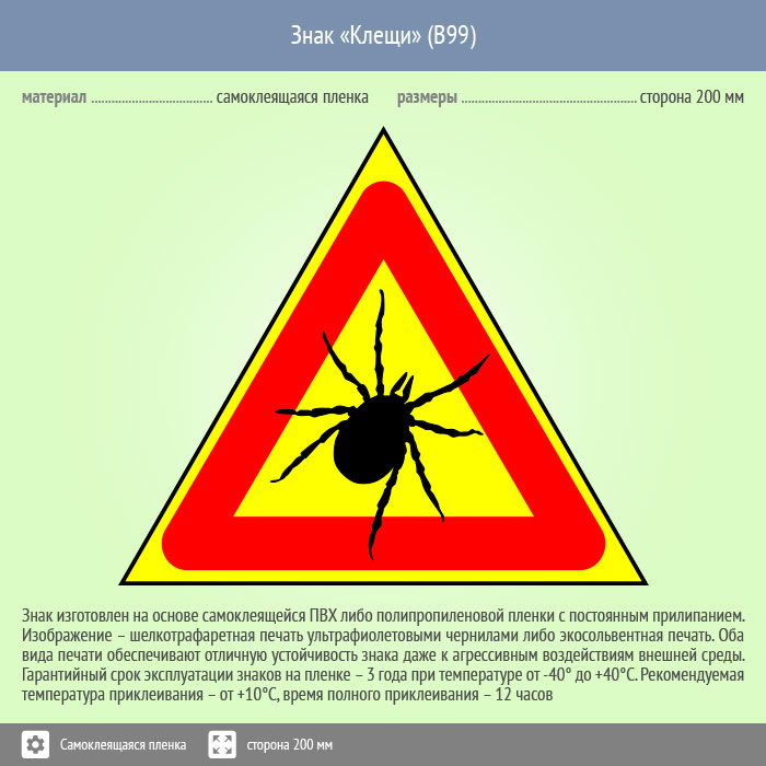 Знак «Клещи», B99 (пленка, сторона 300 мм) в Омске купить