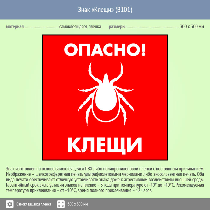 Знак «Опасно! Клещи», B101 (пленка, 300х300 мм) в Омске купить