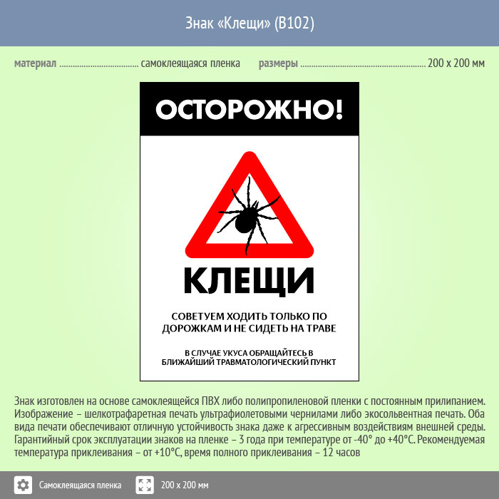Знак «Осторожно! Клещи», B102 (пленка, 400х600 мм) в Омске купить