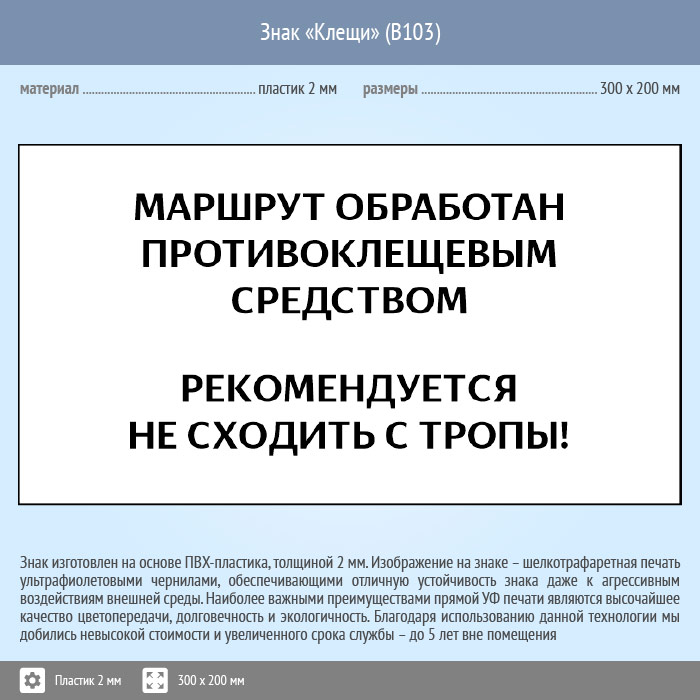 Знак «Клещи», B103 (пластик, 400х300 мм) в Омске купить