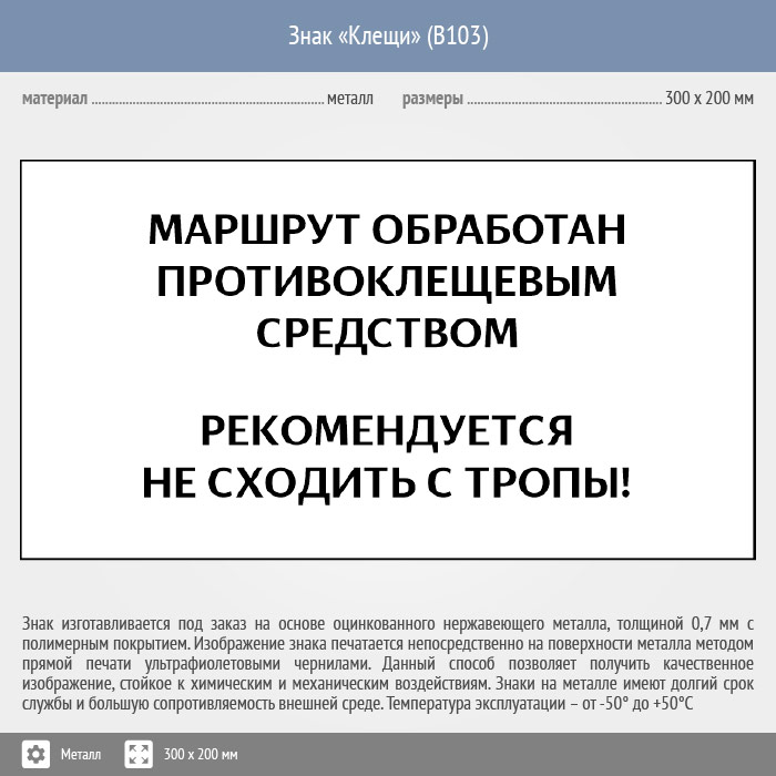 Знак «Клещи», B103 (металл, 400х300 мм) в Омске купить