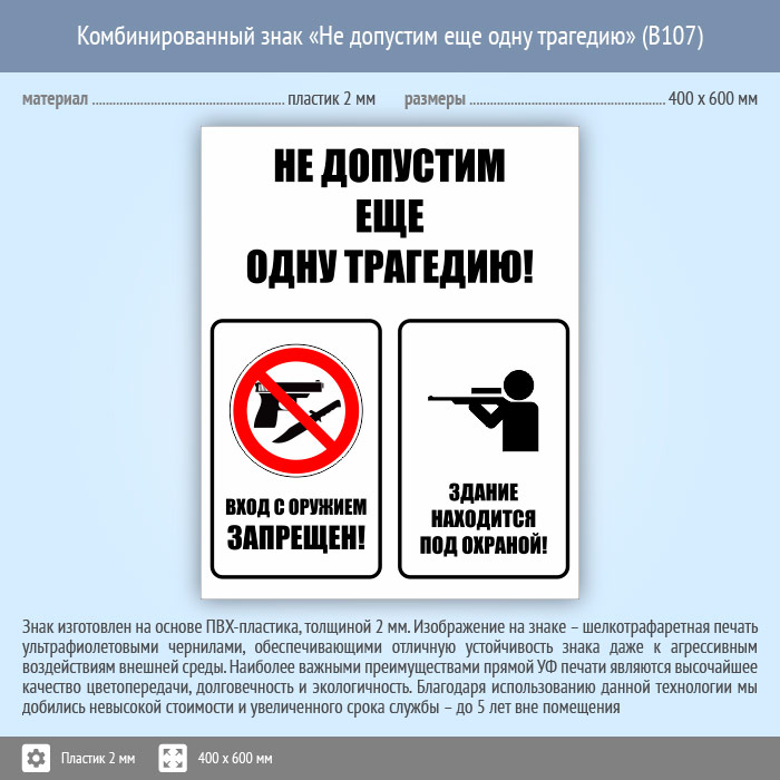 Комбинированный знак «Не допустим еще одну трагедию», B107 (пластик, 400х600 мм) в Омске купить