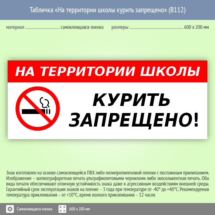 Табличка «На территории школы курить запрещено», B112 (пленка, 600х200 мм) в Омске купить