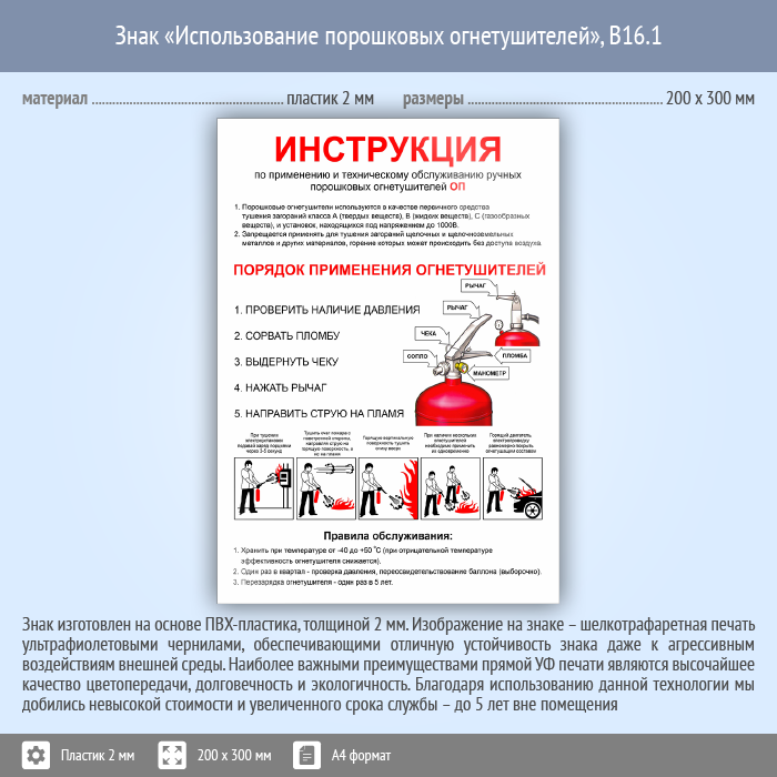 Знак «Использование порошковых огнетушителей», B16.1 (пластик, 200х300 мм) в Омске купить