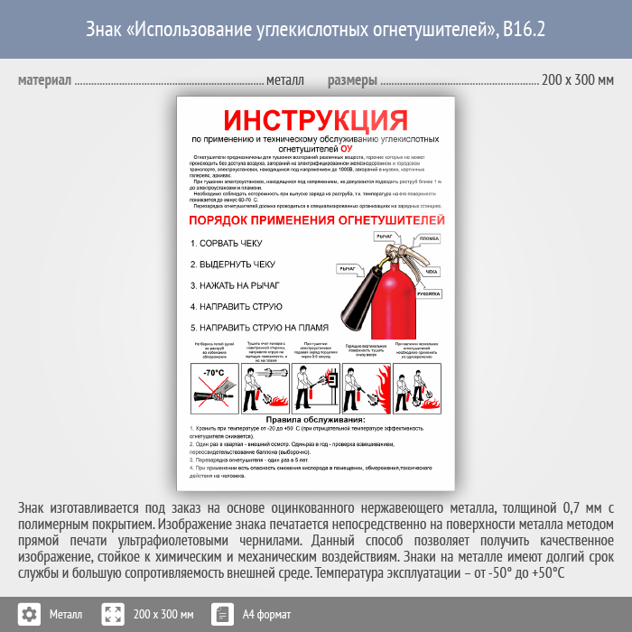 Знак «Использование углекислотных огнетушителей», B16.2 (металл, 200х300 мм) в Омске купить