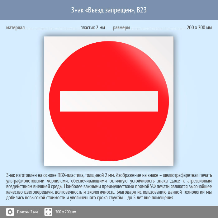 Знак «Въезд запрещен», B23 (пластик, 200х200 мм) в Омске купить
