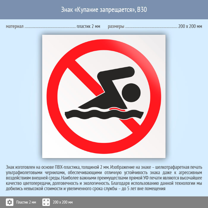 Знак «Купание запрещено», B30 (пластик, 200х200 мм) в Омске купить