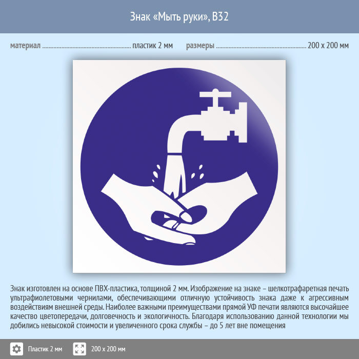 Знак «Мыть руки», B32 (пластик, 200х200 мм) в Омске купить