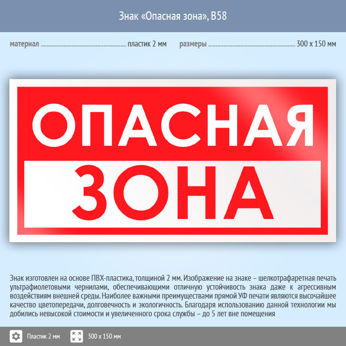 Знак «Опасная зона», B58 (пластик, 300х150 мм) в Омске купить