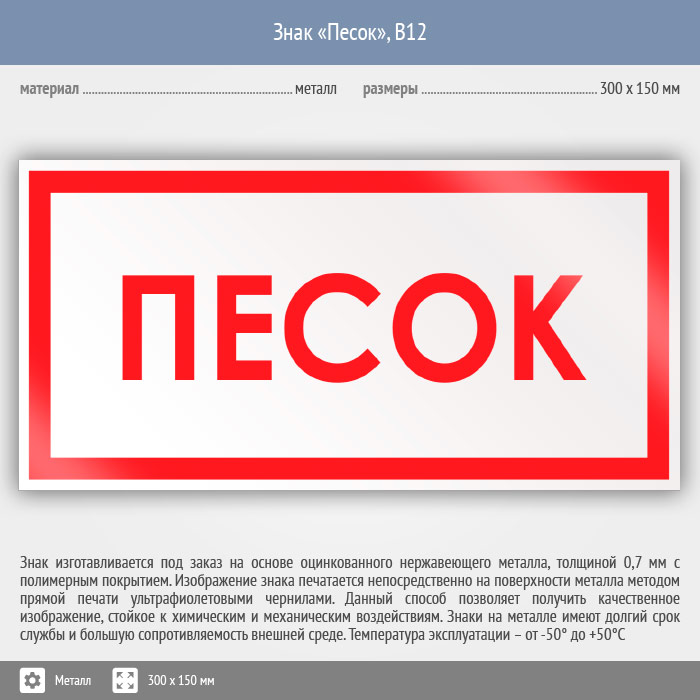 Знак «Песок», B12 (металл, 300х150 мм) в Омске купить
