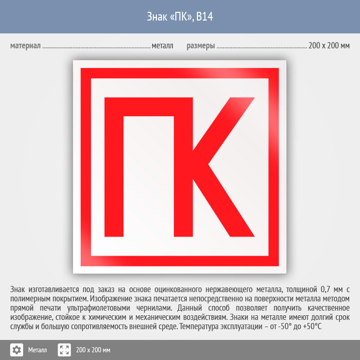 Знак «ПК», B14 (металл, 200х200 мм) в Омске купить