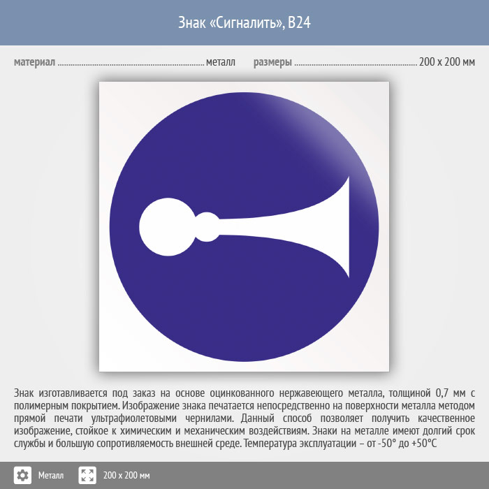 Знак «Сигналить», B24 (металл, 200х200 мм) в Омске купить