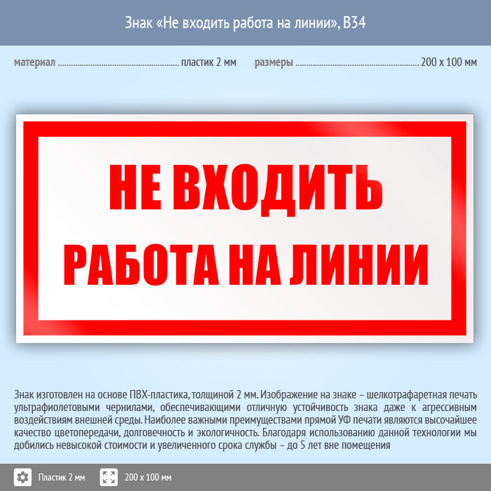 Знак «Не входить работа на линии», B34 (пластик, 200х100 мм) в Омске купить