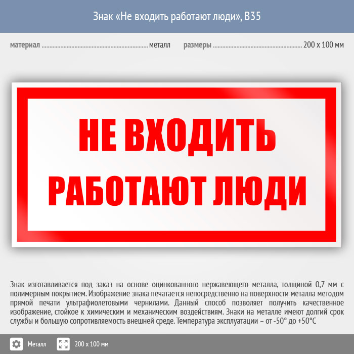 Знак «Не входить работают люди», B35 (металл, 200х100 мм) в Омске купить