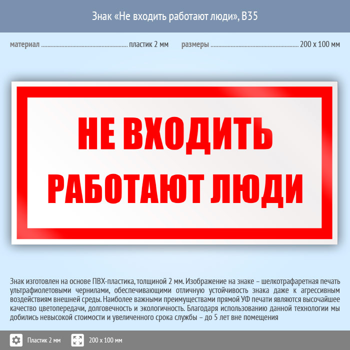 Знак «Не входить работают люди», B35 (пластик, 200х100 мм) в Омске купить